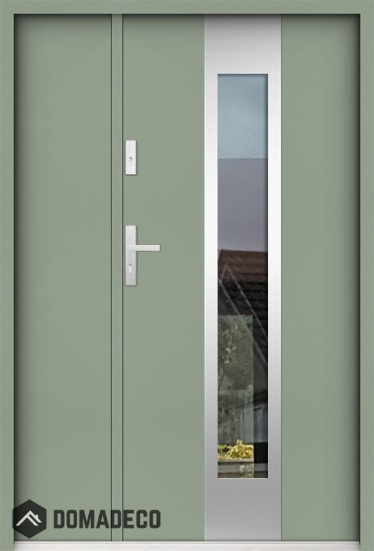 Die Türen bestehen aus Edelstahl. Im Inneren ist es mit PUR-Polyurethanschaum und Holz gefüllt. Die Türblattdicke beträgt 55 mm. Doppeldichtungssystem - Eine Dichtung befindet sich am unteren Rand des Rahmens und die andere im Lagerteil des Türblatts. Sie reduzieren Vibrationen und schützen Ihr Zuhause vor Wärmeverlust. Sie ändern ihre Lautstärke nicht unter dem Einfluss von Wetterbedingungen. Der Türrahmen hat einbruchhemmende Verstärkungen in den Scharnierteilen und Verriegelungspunkten.