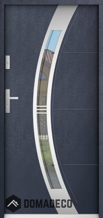 Die Türen bestehen aus Edelstahl. Im Inneren ist es mit PUR-Polyurethanschaum und Holz gefüllt. Die Türblattdicke beträgt 55 mm. Doppeldichtungssystem - Eine Dichtung befindet sich am unteren Rand des Rahmens und die andere im Lagerteil des Türblatts. Sie reduzieren Vibrationen und schützen Ihr Zuhause vor Wärmeverlust. Sie ändern ihre Lautstärke nicht unter dem Einfluss von Wetterbedingungen. Der Türrahmen hat einbruchhemmende Verstärkungen in den Scharnierteilen und Verriegelungspunkten.