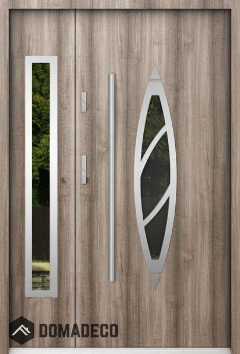 Die Türen bestehen aus Edelstahl. Im Inneren ist es mit PUR-Polyurethanschaum und Holz gefüllt. Die Türblattdicke beträgt 55 mm. Doppeldichtungssystem - Eine Dichtung befindet sich am unteren Rand des Rahmens und die andere im Lagerteil des Türblatts. Sie reduzieren Vibrationen und schützen Ihr Zuhause vor Wärmeverlust. Sie ändern ihre Lautstärke nicht unter dem Einfluss von Wetterbedingungen. Der Türrahmen hat einbruchhemmende Verstärkungen in den Scharnierteilen und Verriegelungspunkten.