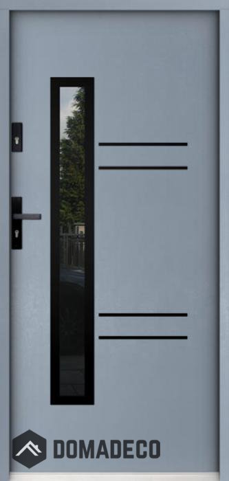 Die Türen bestehen aus Edelstahl. Im Inneren ist es mit PUR-Polyurethanschaum und Holz gefüllt. Die Türblattdicke beträgt 55 mm. Doppeldichtungssystem - Eine Dichtung befindet sich am unteren Rand des Rahmens und die andere im Lagerteil des Türblatts. Sie reduzieren Vibrationen und schützen Ihr Zuhause vor Wärmeverlust. Sie ändern ihre Lautstärke nicht unter dem Einfluss von Wetterbedingungen. Der Türrahmen hat einbruchhemmende Verstärkungen in den Scharnierteilen und Verriegelungspunkten.