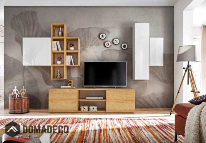 Holzähnliche Frontfarbe: Hickory natur, Glänzende Frontfarbe: weiß glänzend