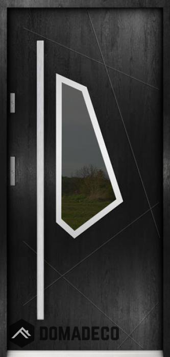 Die Türen bestehen aus Edelstahl. Im Inneren ist es mit PUR-Polyurethanschaum und Holz gefüllt. Die Türblattdicke beträgt 55 mm. Doppeldichtungssystem - Eine Dichtung befindet sich am unteren Rand des Rahmens und die andere im Lagerteil des Türblatts. Sie reduzieren Vibrationen und schützen Ihr Zuhause vor Wärmeverlust. Sie ändern ihre Lautstärke nicht unter dem Einfluss von Wetterbedingungen. Der Türrahmen hat einbruchhemmende Verstärkungen in den Scharnierteilen und Verriegelungspunkten.