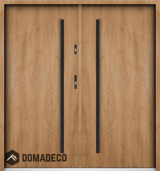Die Türen bestehen aus Edelstahl. Im Inneren ist es mit PUR-Polyurethanschaum und Holz gefüllt. Die Türblattdicke beträgt 55 mm. Doppeldichtungssystem - Eine Dichtung befindet sich am unteren Rand des Rahmens und die andere im Lagerteil des Türblatts. Sie reduzieren Vibrationen und schützen Ihr Zuhause vor Wärmeverlust. Sie ändern ihre Lautstärke nicht unter dem Einfluss von Wetterbedingungen. Der Türrahmen hat einbruchhemmende Verstärkungen in den Scharnierteilen und Verriegelungspunkten.