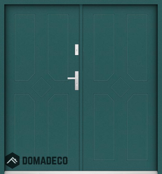 Die Türen bestehen aus Edelstahl. Im Inneren ist es mit PUR-Polyurethanschaum und Holz gefüllt. Die Türblattdicke beträgt 55 mm. Doppeldichtungssystem - Eine Dichtung befindet sich am unteren Rand des Rahmens und die andere im Lagerteil des Türblatts. Sie reduzieren Vibrationen und schützen Ihr Zuhause vor Wärmeverlust. Sie ändern ihre Lautstärke nicht unter dem Einfluss von Wetterbedingungen. Der Türrahmen hat einbruchhemmende Verstärkungen in den Scharnierteilen und Verriegelungspunkten.