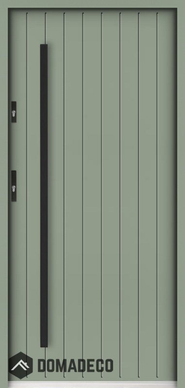 Die Türen bestehen aus Edelstahl. Im Inneren ist es mit PUR-Polyurethanschaum und Holz gefüllt. Die Türblattdicke beträgt 55 mm. Doppeldichtungssystem - Eine Dichtung befindet sich am unteren Rand des Rahmens und die andere im Lagerteil des Türblatts. Sie reduzieren Vibrationen und schützen Ihr Zuhause vor Wärmeverlust. Sie ändern ihre Lautstärke nicht unter dem Einfluss von Wetterbedingungen. Der Türrahmen hat einbruchhemmende Verstärkungen in den Scharnierteilen und Verriegelungspunkten.