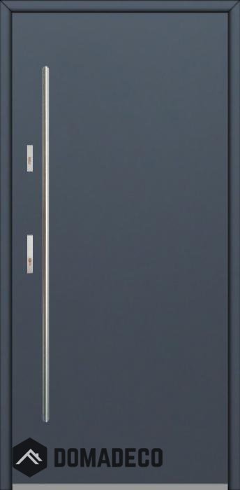 Die Türen bestehen aus Edelstahl. Im Inneren ist es mit PUR-Polyurethanschaum und Holz gefüllt. Die Türblattdicke beträgt 64 mm. Doppeldichtungssystem - Eine Dichtung befindet sich am unteren Rand des Rahmens und die andere im Lagerteil des Türblatts. Sie reduzieren Vibrationen und schützen Ihr Zuhause vor Wärmeverlust. Sie ändern ihre Lautstärke nicht unter dem Einfluss von Wetterbedingungen. Der Türrahmen hat einbruchhemmende Verstärkungen in den Scharnierteilen und Verriegelungspunkten.