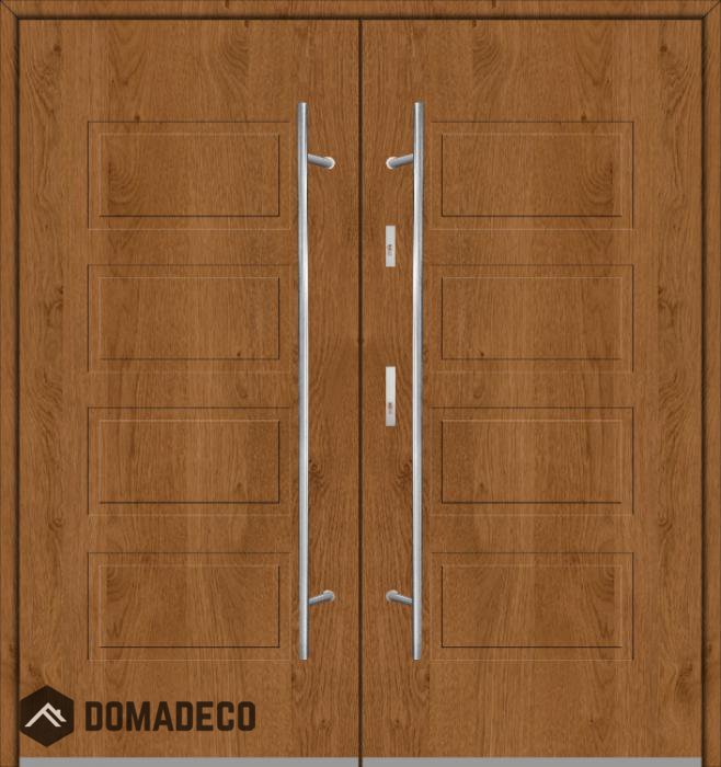 Die Türen bestehen aus Edelstahl. Im Inneren ist es mit PUR-Polyurethanschaum und Holz gefüllt. Die Türblattdicke beträgt 54 mm. Doppeldichtungssystem - Eine Dichtung befindet sich am unteren Rand des Rahmens und die andere im Lagerteil des Türblatts. Sie reduzieren Vibrationen und schützen Ihr Zuhause vor Wärmeverlust. Sie ändern ihre Lautstärke nicht unter dem Einfluss von Wetterbedingungen. Der Türrahmen hat einbruchhemmende Verstärkungen in den Scharnierteilen und Verriegelungspunkten.