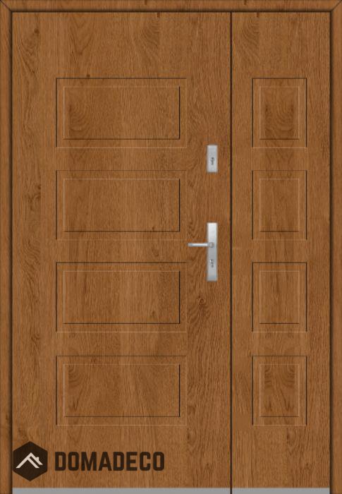 Die Türen bestehen aus Edelstahl. Im Inneren ist es mit PUR-Polyurethanschaum und Holz gefüllt. Die Türblattdicke beträgt 54 mm. Doppeldichtungssystem - Eine Dichtung befindet sich am unteren Rand des Rahmens und die andere im Lagerteil des Türblatts. Sie reduzieren Vibrationen und schützen Ihr Zuhause vor Wärmeverlust. Sie ändern ihre Lautstärke nicht unter dem Einfluss von Wetterbedingungen. Der Türrahmen hat einbruchhemmende Verstärkungen in den Scharnierteilen und Verriegelungspunkten.
