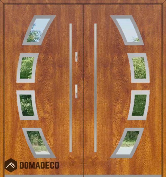 Die Türen bestehen aus Edelstahl. Im Inneren ist es mit PUR-Polyurethanschaum und Holz gefüllt. Die Türblattdicke beträgt 54 mm. Doppeldichtungssystem - Eine Dichtung befindet sich am unteren Rand des Rahmens und die andere im Lagerteil des Türblatts. Sie reduzieren Vibrationen und schützen Ihr Zuhause vor Wärmeverlust. Sie ändern ihre Lautstärke nicht unter dem Einfluss von Wetterbedingungen. Der Türrahmen hat einbruchhemmende Verstärkungen in den Scharnierteilen und Verriegelungspunkten.