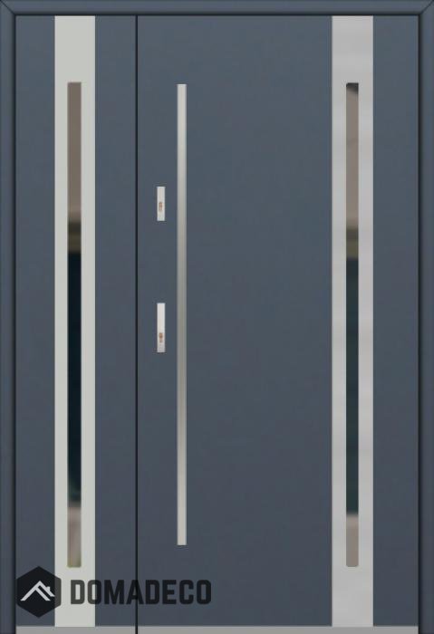 Die Türen bestehen aus Edelstahl. Im Inneren ist es mit PUR-Polyurethanschaum und Holz gefüllt. Die Türblattdicke beträgt 54 mm. Doppeldichtungssystem - Eine Dichtung befindet sich am unteren Rand des Rahmens und die andere im Lagerteil des Türblatts. Sie reduzieren Vibrationen und schützen Ihr Zuhause vor Wärmeverlust. Sie ändern ihre Lautstärke nicht unter dem Einfluss von Wetterbedingungen. Der Türrahmen hat einbruchhemmende Verstärkungen in den Scharnierteilen und Verriegelungspunkten.