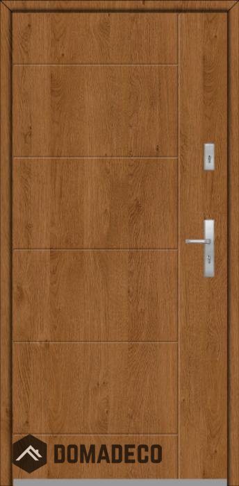 Die Türen bestehen aus Edelstahl. Im Inneren ist es mit PUR-Polyurethanschaum und Holz gefüllt. Die Türblattdicke beträgt 64 mm. Doppeldichtungssystem - Eine Dichtung befindet sich am unteren Rand des Rahmens und die andere im Lagerteil des Türblatts. Sie reduzieren Vibrationen und schützen Ihr Zuhause vor Wärmeverlust. Sie ändern ihre Lautstärke nicht unter dem Einfluss von Wetterbedingungen. Der Türrahmen hat einbruchhemmende Verstärkungen in den Scharnierteilen und Verriegelungspunkten.