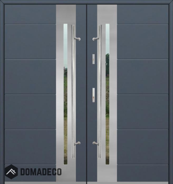 Die Türen bestehen aus Edelstahl. Im Inneren ist es mit PUR-Polyurethanschaum und Holz gefüllt. Die Türblattdicke beträgt 54 mm. Doppeldichtungssystem - Eine Dichtung befindet sich am unteren Rand des Rahmens und die andere im Lagerteil des Türblatts. Sie reduzieren Vibrationen und schützen Ihr Zuhause vor Wärmeverlust. Sie ändern ihre Lautstärke nicht unter dem Einfluss von Wetterbedingungen. Der Türrahmen hat einbruchhemmende Verstärkungen in den Scharnierteilen und Verriegelungspunkten.
