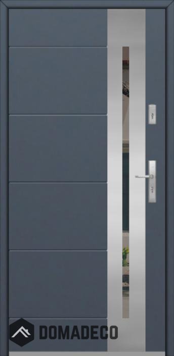 Die Türen bestehen aus Edelstahl. Im Inneren ist es mit PUR-Polyurethanschaum und Holz gefüllt. Die Türblattdicke beträgt 64 mm. Doppeldichtungssystem - Eine Dichtung befindet sich am unteren Rand des Rahmens und die andere im Lagerteil des Türblatts. Sie reduzieren Vibrationen und schützen Ihr Zuhause vor Wärmeverlust. Sie ändern ihre Lautstärke nicht unter dem Einfluss von Wetterbedingungen. Der Türrahmen hat einbruchhemmende Verstärkungen in den Scharnierteilen und Verriegelungspunkten.