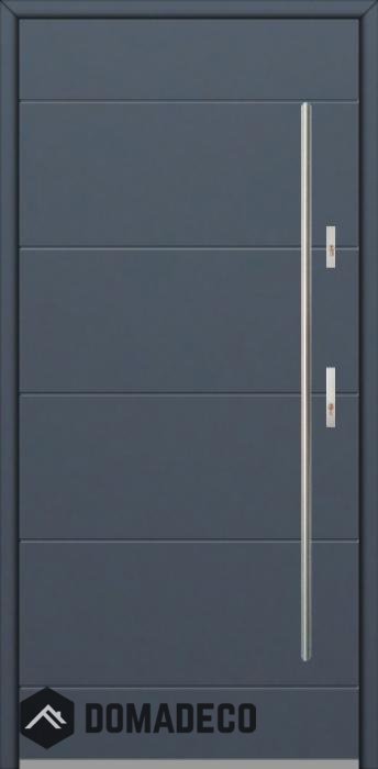 Die Türen bestehen aus Edelstahl. Im Inneren ist es mit PUR-Polyurethanschaum und Holz gefüllt. Die Türblattdicke beträgt 64 mm. Doppeldichtungssystem - Eine Dichtung befindet sich am unteren Rand des Rahmens und die andere im Lagerteil des Türblatts. Sie reduzieren Vibrationen und schützen Ihr Zuhause vor Wärmeverlust. Sie ändern ihre Lautstärke nicht unter dem Einfluss von Wetterbedingungen. Der Türrahmen hat einbruchhemmende Verstärkungen in den Scharnierteilen und Verriegelungspunkten.