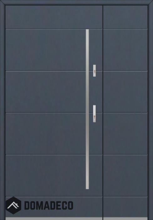 Die Türen bestehen aus Edelstahl. Im Inneren ist es mit PUR-Polyurethanschaum und Holz gefüllt. Die Türblattdicke beträgt 54 mm. Doppeldichtungssystem - Eine Dichtung befindet sich am unteren Rand des Rahmens und die andere im Lagerteil des Türblatts. Sie reduzieren Vibrationen und schützen Ihr Zuhause vor Wärmeverlust. Sie ändern ihre Lautstärke nicht unter dem Einfluss von Wetterbedingungen. Der Türrahmen hat einbruchhemmende Verstärkungen in den Scharnierteilen und Verriegelungspunkten.