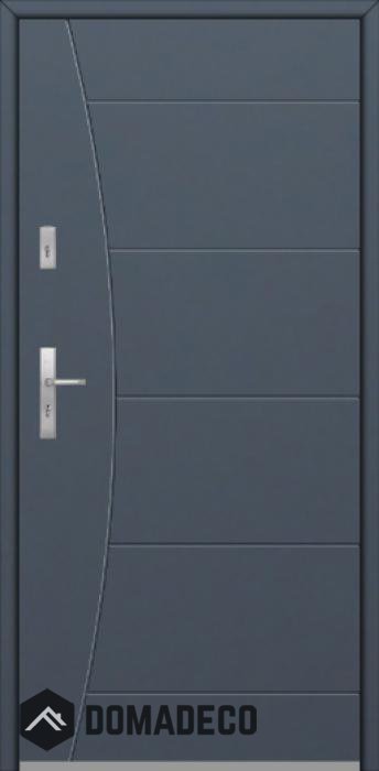 Die Türen bestehen aus Edelstahl. Im Inneren ist es mit PUR-Polyurethanschaum und Holz gefüllt. Die Türblattdicke beträgt 64 mm. Doppeldichtungssystem - Eine Dichtung befindet sich am unteren Rand des Rahmens und die andere im Lagerteil des Türblatts. Sie reduzieren Vibrationen und schützen Ihr Zuhause vor Wärmeverlust. Sie ändern ihre Lautstärke nicht unter dem Einfluss von Wetterbedingungen. Der Türrahmen hat einbruchhemmende Verstärkungen in den Scharnierteilen und Verriegelungspunkten.