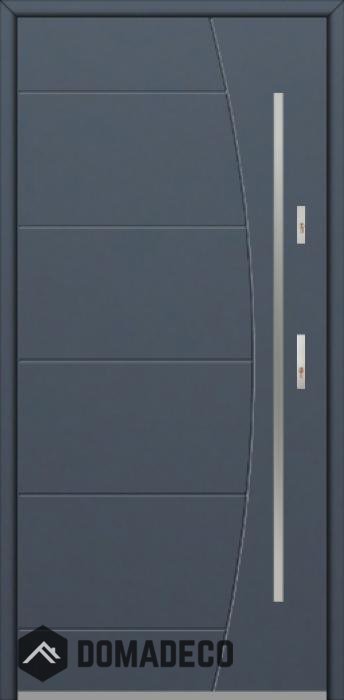 Die Türen bestehen aus Edelstahl. Im Inneren ist es mit PUR-Polyurethanschaum und Holz gefüllt. Die Türblattdicke beträgt 64 mm. Doppeldichtungssystem - Eine Dichtung befindet sich am unteren Rand des Rahmens und die andere im Lagerteil des Türblatts. Sie reduzieren Vibrationen und schützen Ihr Zuhause vor Wärmeverlust. Sie ändern ihre Lautstärke nicht unter dem Einfluss von Wetterbedingungen. Der Türrahmen hat einbruchhemmende Verstärkungen in den Scharnierteilen und Verriegelungspunkten.