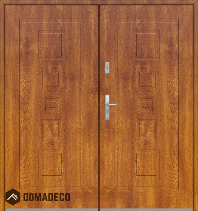 Die Türen bestehen aus Edelstahl. Im Inneren ist es mit PUR-Polyurethanschaum und Holz gefüllt. Die Türblattdicke beträgt 54 mm. Doppeldichtungssystem - Eine Dichtung befindet sich am unteren Rand des Rahmens und die andere im Lagerteil des Türblatts. Sie reduzieren Vibrationen und schützen Ihr Zuhause vor Wärmeverlust. Sie ändern ihre Lautstärke nicht unter dem Einfluss von Wetterbedingungen. Der Türrahmen hat einbruchhemmende Verstärkungen in den Scharnierteilen und Verriegelungspunkten.