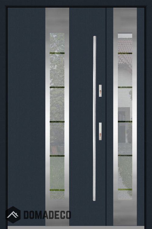 Die Türen bestehen aus Edelstahl. Im Inneren ist es mit PUR-Polyurethanschaum und Holz gefüllt. Die Türblattdicke beträgt 54 mm. Doppeldichtungssystem - Eine Dichtung befindet sich am unteren Rand des Rahmens und die andere im Lagerteil des Türblatts. Sie reduzieren Vibrationen und schützen Ihr Zuhause vor Wärmeverlust. Sie ändern ihre Lautstärke nicht unter dem Einfluss von Wetterbedingungen. Der Türrahmen hat einbruchhemmende Verstärkungen in den Scharnierteilen und Verriegelungspunkten.