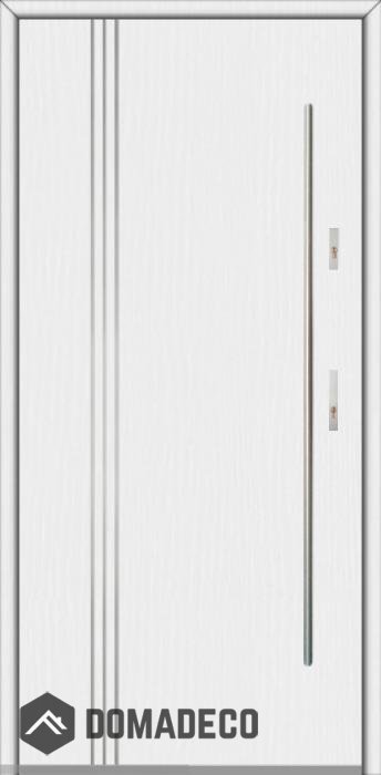 Die Türen bestehen aus Edelstahl. Im Inneren ist es mit PUR-Polyurethanschaum und Holz gefüllt. Die Türblattdicke beträgt 64 mm. Doppeldichtungssystem - Eine Dichtung befindet sich am unteren Rand des Rahmens und die andere im Lagerteil des Türblatts. Sie reduzieren Vibrationen und schützen Ihr Zuhause vor Wärmeverlust. Sie ändern ihre Lautstärke nicht unter dem Einfluss von Wetterbedingungen. Der Türrahmen hat einbruchhemmende Verstärkungen in den Scharnierteilen und Verriegelungspunkten.