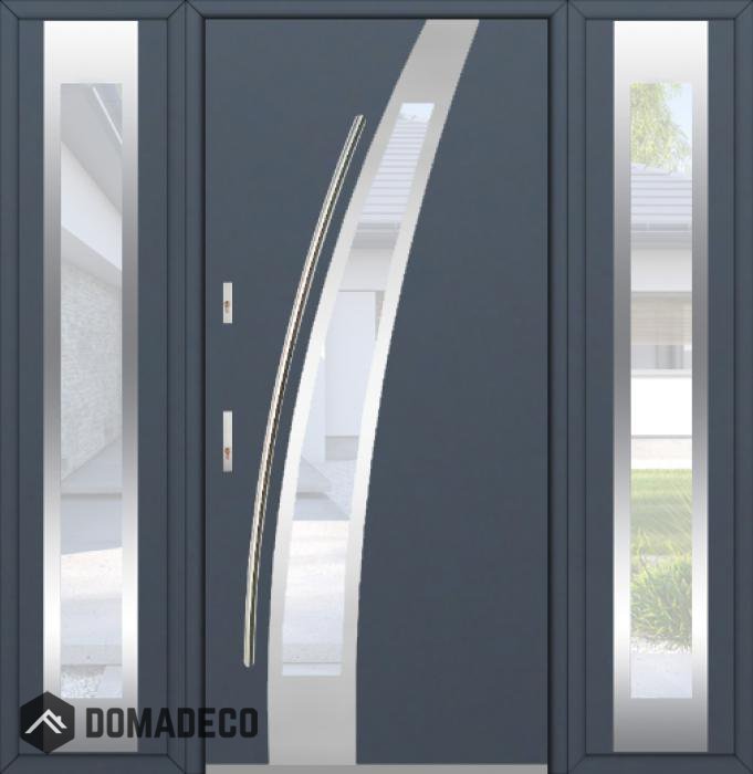 Die Türen bestehen aus Edelstahl. Im Inneren ist es mit PUR-Polyurethanschaum und Holz gefüllt. Die Türblattdicke beträgt 54 mm. Doppeldichtungssystem - Eine Dichtung befindet sich am unteren Rand des Rahmens und die andere im Lagerteil des Türblatts. Sie reduzieren Vibrationen und schützen Ihr Zuhause vor Wärmeverlust. Sie ändern ihre Lautstärke nicht unter dem Einfluss von Wetterbedingungen. Der Türrahmen hat einbruchhemmende Verstärkungen in den Scharnierteilen und Verriegelungspunkten.