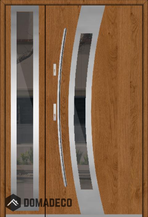 Die Türen bestehen aus Edelstahl. Im Inneren ist es mit PUR-Polyurethanschaum und Holz gefüllt. Die Türblattdicke beträgt 54 mm. Doppeldichtungssystem - Eine Dichtung befindet sich am unteren Rand des Rahmens und die andere im Lagerteil des Türblatts. Sie reduzieren Vibrationen und schützen Ihr Zuhause vor Wärmeverlust. Sie ändern ihre Lautstärke nicht unter dem Einfluss von Wetterbedingungen. Der Türrahmen hat einbruchhemmende Verstärkungen in den Scharnierteilen und Verriegelungspunkten.