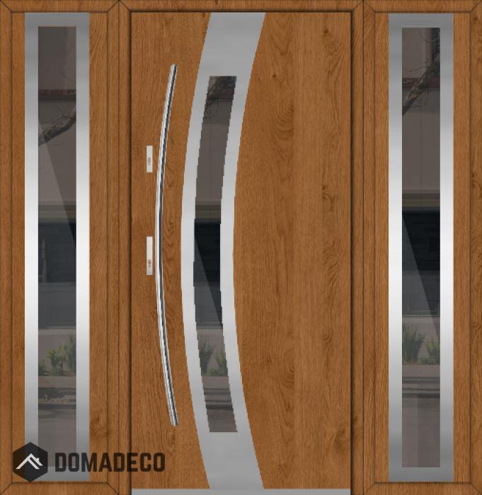 Die Türen bestehen aus Edelstahl. Im Inneren ist es mit PUR-Polyurethanschaum und Holz gefüllt. Die Türblattdicke beträgt 54 mm. Doppeldichtungssystem - Eine Dichtung befindet sich am unteren Rand des Rahmens und die andere im Lagerteil des Türblatts. Sie reduzieren Vibrationen und schützen Ihr Zuhause vor Wärmeverlust. Sie ändern ihre Lautstärke nicht unter dem Einfluss von Wetterbedingungen. Der Türrahmen hat einbruchhemmende Verstärkungen in den Scharnierteilen und Verriegelungspunkten.