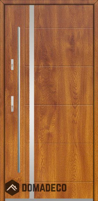 Die Türen bestehen aus Edelstahl. Im Inneren ist es mit PUR-Polyurethanschaum und Holz gefüllt. Die Türblattdicke beträgt 64 mm. Doppeldichtungssystem - Eine Dichtung befindet sich am unteren Rand des Rahmens und die andere im Lagerteil des Türblatts. Sie reduzieren Vibrationen und schützen Ihr Zuhause vor Wärmeverlust. Sie ändern ihre Lautstärke nicht unter dem Einfluss von Wetterbedingungen. Der Türrahmen hat einbruchhemmende Verstärkungen in den Scharnierteilen und Verriegelungspunkten.