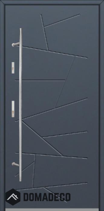 Die Türen bestehen aus Edelstahl. Im Inneren ist es mit PUR-Polyurethanschaum und Holz gefüllt. Die Türblattdicke beträgt 64 mm. Doppeldichtungssystem - Eine Dichtung befindet sich am unteren Rand des Rahmens und die andere im Lagerteil des Türblatts. Sie reduzieren Vibrationen und schützen Ihr Zuhause vor Wärmeverlust. Sie ändern ihre Lautstärke nicht unter dem Einfluss von Wetterbedingungen. Der Türrahmen hat einbruchhemmende Verstärkungen in den Scharnierteilen und Verriegelungspunkten.