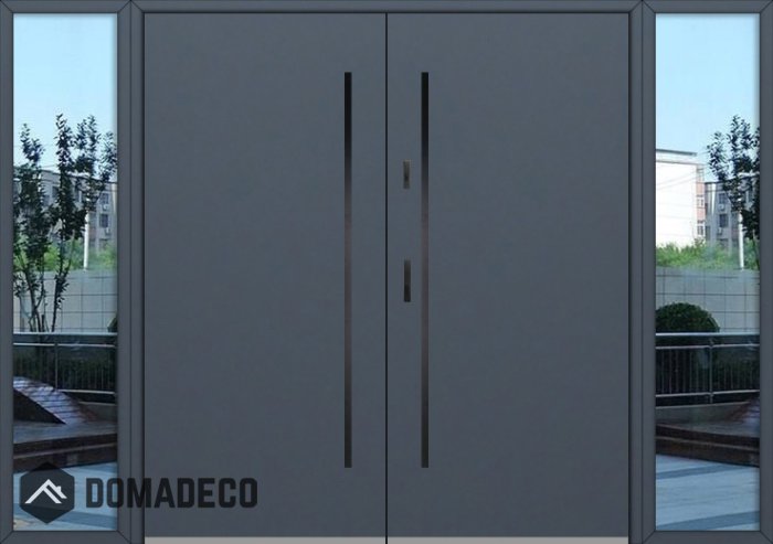 Die Türen bestehen aus Edelstahl. Im Inneren ist es mit PUR-Polyurethanschaum und Holz gefüllt. Die Türblattdicke beträgt 54 mm. Doppeldichtungssystem - Eine Dichtung befindet sich am unteren Rand des Rahmens und die andere im Lagerteil des Türblatts. Sie reduzieren Vibrationen und schützen Ihr Zuhause vor Wärmeverlust. Sie ändern ihre Lautstärke nicht unter dem Einfluss von Wetterbedingungen. Der Türrahmen hat einbruchhemmende Verstärkungen in den Scharnierteilen und Verriegelungspunkten.