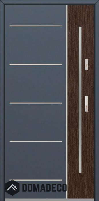Modernes Design basierend auf einer neuen Technologie, bestehend aus der Spülung von Edelstahlelementen auf der Türoberfläche.
