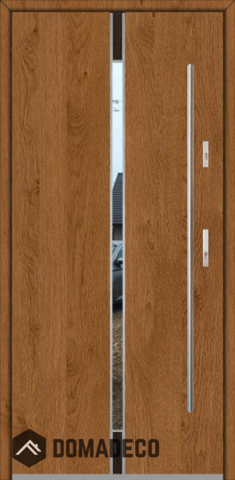 Modernes Design basierend auf einer neuen Technologie, bestehend aus der Spülung von Edelstahlelementen auf der Türoberfläche.