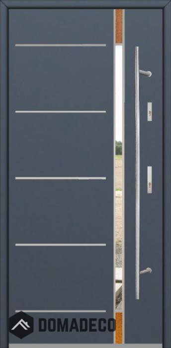 Modernes Design basierend auf einer neuen Technologie, bestehend aus der Spülung von Edelstahlelementen auf der Türoberfläche.