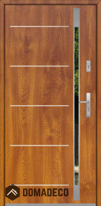 Modernes Design basierend auf einer neuen Technologie, bestehend aus der Spülung von Edelstahlelementen auf der Türoberfläche.