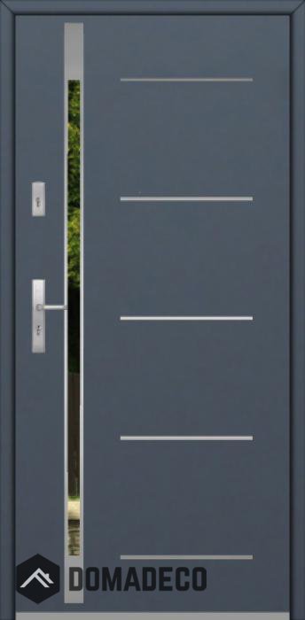 Modernes Design basierend auf einer neuen Technologie, bestehend aus der Spülung von Edelstahlelementen auf der Türoberfläche.