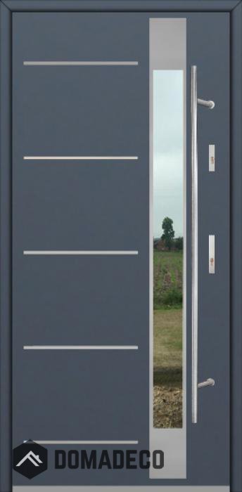 Modernes Design basierend auf einer neuen Technologie, bestehend aus der Spülung von Edelstahlelementen auf der Türoberfläche.