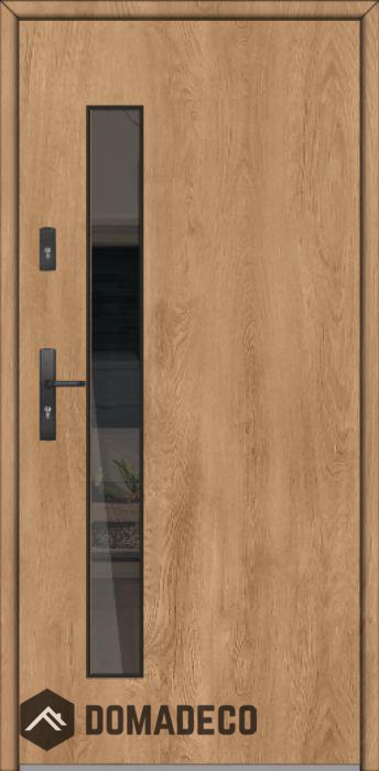 Modernes Design basierend auf einer neuen Technologie, bestehend aus der Spülung von Edelstahlelementen auf der Türoberfläche.