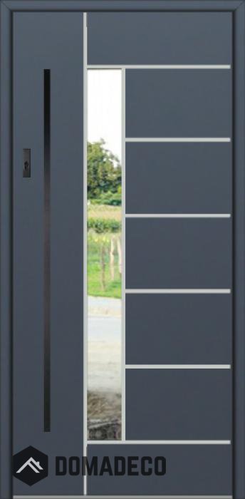 Modernes Design basierend auf einer neuen Technologie, bestehend aus der Spülung von Edelstahlelementen auf der Türoberfläche.