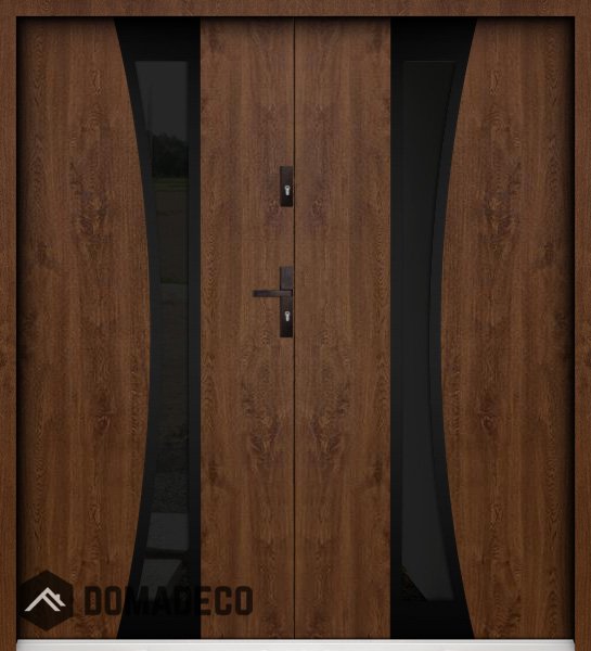 Die Türen bestehen aus Edelstahl. Im Inneren ist es mit PUR-Polyurethanschaum und Holz gefüllt. Die Türblattdicke beträgt 55 mm. Doppeldichtungssystem - Eine Dichtung befindet sich am unteren Rand des Rahmens und die andere im Lagerteil des Türblatts. Sie reduzieren Vibrationen und schützen Ihr Zuhause vor Wärmeverlust. Sie ändern ihre Lautstärke nicht unter dem Einfluss von Wetterbedingungen. Der Türrahmen hat einbruchhemmende Verstärkungen in den Scharnierteilen und Verriegelungspunkten.