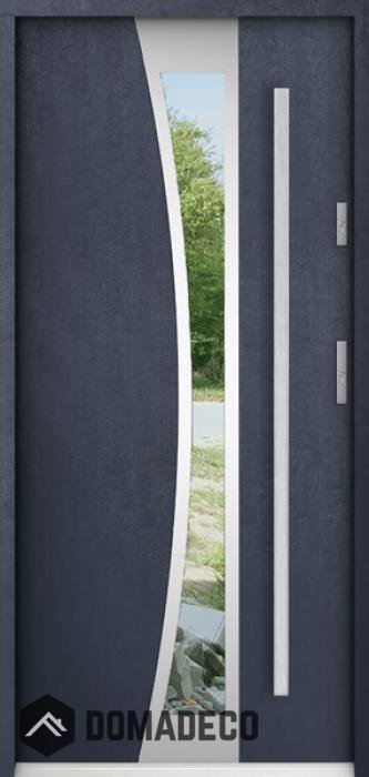 Die Türen bestehen aus Edelstahl. Im Inneren ist es mit PUR-Polyurethanschaum und Holz gefüllt. Die Türblattdicke beträgt 55 mm. Doppeldichtungssystem - Eine Dichtung befindet sich am unteren Rand des Rahmens und die andere im Lagerteil des Türblatts. Sie reduzieren Vibrationen und schützen Ihr Zuhause vor Wärmeverlust. Sie ändern ihre Lautstärke nicht unter dem Einfluss von Wetterbedingungen. Der Türrahmen hat einbruchhemmende Verstärkungen in den Scharnierteilen und Verriegelungspunkten.
