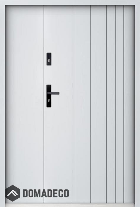 Die Türen bestehen aus Edelstahl. Im Inneren ist es mit PUR-Polyurethanschaum und Holz gefüllt. Die Türblattdicke beträgt 55 mm. Doppeldichtungssystem - Eine Dichtung befindet sich am unteren Rand des Rahmens und die andere im Lagerteil des Türblatts. Sie reduzieren Vibrationen und schützen Ihr Zuhause vor Wärmeverlust. Sie ändern ihre Lautstärke nicht unter dem Einfluss von Wetterbedingungen. Der Türrahmen hat einbruchhemmende Verstärkungen in den Scharnierteilen und Verriegelungspunkten.