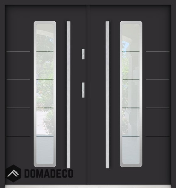 Die Türen bestehen aus Edelstahl. Im Inneren ist es mit PUR-Polyurethanschaum und Holz gefüllt. Die Türblattdicke beträgt 55 mm. Doppeldichtungssystem - Eine Dichtung befindet sich am unteren Rand des Rahmens und die andere im Lagerteil des Türblatts. Sie reduzieren Vibrationen und schützen Ihr Zuhause vor Wärmeverlust. Sie ändern ihre Lautstärke nicht unter dem Einfluss von Wetterbedingungen. Der Türrahmen hat einbruchhemmende Verstärkungen in den Scharnierteilen und Verriegelungspunkten.