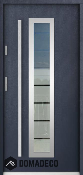 Die Türen bestehen aus Edelstahl. Im Inneren ist es mit PUR-Polyurethanschaum und Holz gefüllt. Die Türblattdicke beträgt 55 mm. Doppeldichtungssystem - Eine Dichtung befindet sich am unteren Rand des Rahmens und die andere im Lagerteil des Türblatts. Sie reduzieren Vibrationen und schützen Ihr Zuhause vor Wärmeverlust. Sie ändern ihre Lautstärke nicht unter dem Einfluss von Wetterbedingungen. Der Türrahmen hat einbruchhemmende Verstärkungen in den Scharnierteilen und Verriegelungspunkten.