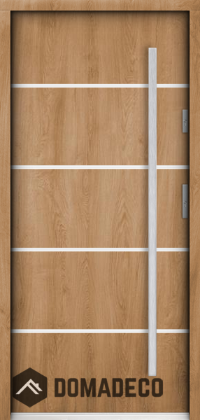 Die Türen bestehen aus Edelstahl. Im Inneren ist es mit PUR-Polyurethanschaum und Holz gefüllt. Die Türblattdicke beträgt 55 mm. Doppeldichtungssystem - Eine Dichtung befindet sich am unteren Rand des Rahmens und die andere im Lagerteil des Türblatts. Sie reduzieren Vibrationen und schützen Ihr Zuhause vor Wärmeverlust. Sie ändern ihre Lautstärke nicht unter dem Einfluss von Wetterbedingungen. Der Türrahmen hat einbruchhemmende Verstärkungen in den Scharnierteilen und Verriegelungspunkten.
