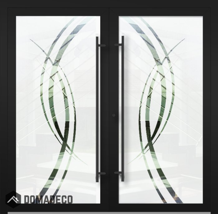 LIM GLASS double S - mattierte Aluminium-Doppeltür mit transparentem Motiv