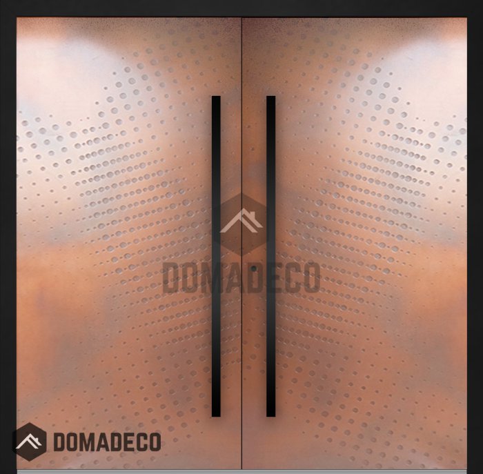 LIM M17 double - Aluminium-Doppeleingangstür mit Kupferstruktur aus gefrästem Metall