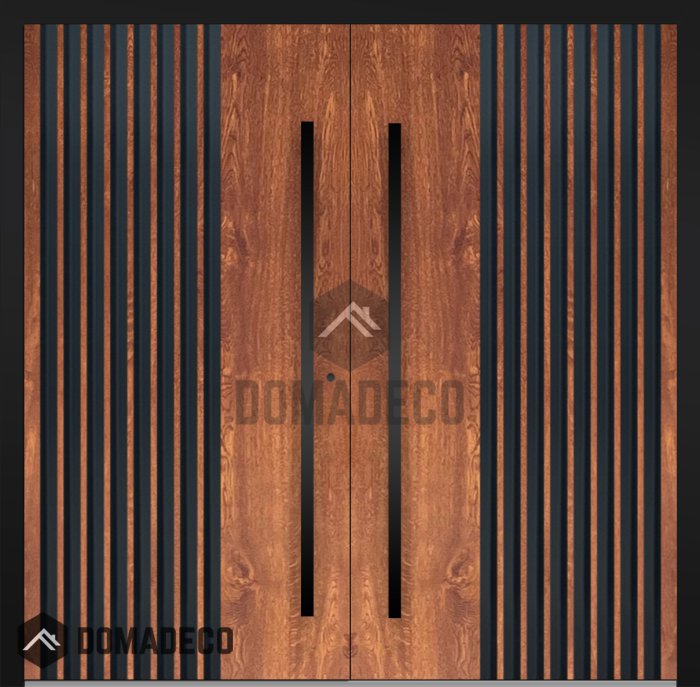 LIM RAIL6 double - Aluminium-Doppelflügeltür mit schwarzen Vertikal-Lamellen aus Aluminiumprofilen