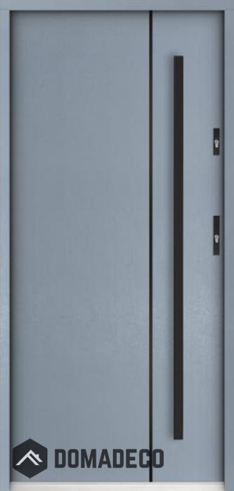 Die Türen bestehen aus Edelstahl. Im Inneren ist es mit PUR-Polyurethanschaum und Holz gefüllt. Die Türblattdicke beträgt 55 mm. Doppeldichtungssystem - Eine Dichtung befindet sich am unteren Rand des Rahmens und die andere im Lagerteil des Türblatts. Sie reduzieren Vibrationen und schützen Ihr Zuhause vor Wärmeverlust. Sie ändern ihre Lautstärke nicht unter dem Einfluss von Wetterbedingungen. Der Türrahmen hat einbruchhemmende Verstärkungen in den Scharnierteilen und Verriegelungspunkten.