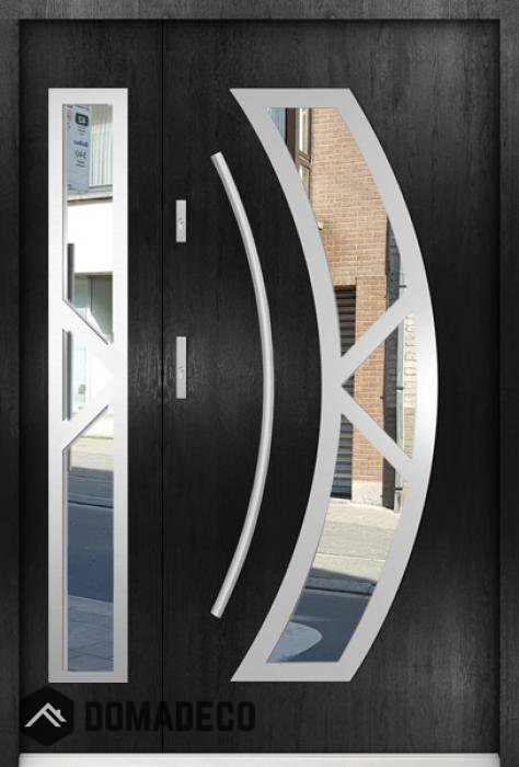 Die Türen bestehen aus Edelstahl. Im Inneren ist es mit PUR-Polyurethanschaum und Holz gefüllt. Die Türblattdicke beträgt 55 mm. Doppeldichtungssystem - Eine Dichtung befindet sich am unteren Rand des Rahmens und die andere im Lagerteil des Türblatts. Sie reduzieren Vibrationen und schützen Ihr Zuhause vor Wärmeverlust. Sie ändern ihre Lautstärke nicht unter dem Einfluss von Wetterbedingungen. Der Türrahmen hat einbruchhemmende Verstärkungen in den Scharnierteilen und Verriegelungspunkten.