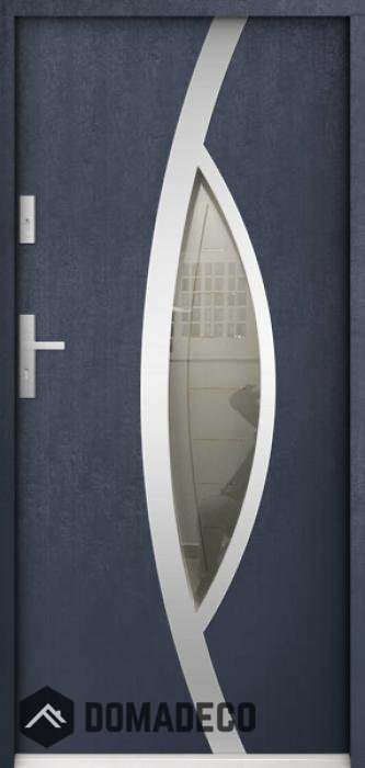Die Türen bestehen aus Edelstahl. Im Inneren ist es mit PUR-Polyurethanschaum und Holz gefüllt. Die Türblattdicke beträgt 55 mm. Doppeldichtungssystem - Eine Dichtung befindet sich am unteren Rand des Rahmens und die andere im Lagerteil des Türblatts. Sie reduzieren Vibrationen und schützen Ihr Zuhause vor Wärmeverlust. Sie ändern ihre Lautstärke nicht unter dem Einfluss von Wetterbedingungen. Der Türrahmen hat einbruchhemmende Verstärkungen in den Scharnierteilen und Verriegelungspunkten.